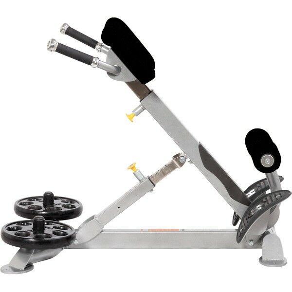 Le banc à lombaires réglable professionnel Hoist Fitness CF-3663 est idéal pour le renforcement des muscles du dos. Il permet de travailler les muscles lombaires par élévation du buste en position inclinée. Le réglage d'angle permet d'ajuster la difficulté de l'exercice sur 4 niveaux, de 35° à 50°. L'ajustement de l'inclinaison se fait très simplement grâce à la goupille à tirage rapide.