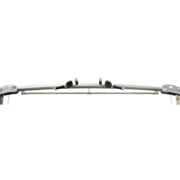 ● Larges poignées de maintien pour les exercices des membres inférieurs ● Poulies universelles sur colonne rotative 360°, avec protection contre les chocs ● Réglage de la hauteur des poulies universelles à une main, sur 32 niveaux ● Barre de liaison intégrant poignées de tractions traditionnelles, poignées de traction type prise d'escalade et barre droite pour sangle de suspension ● 90 kg de charge sur chaque côté du crossover ● Poids total 381 kg, gage de stabilité et de qualité ● Accessoires fournis : (2) poignée simple en aluminium ultra-léger, (2) barre courte biceps-triceps en aluminium ultra-léger, (2) chevillère matelassée. ● Appareil de musculation professionnel conçu pour un usage intensif en club de remise en forme ● Voir la section "Composants" pour le détail complet des caractéristiques techniques