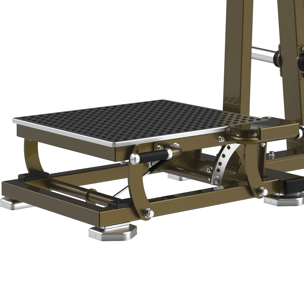 La machine dispose des deux côtés permettant de varier la position d'exercice. La première face dispose d'une plateforme réglable en hauteur pour les entraînements debout tandis que la seconde face dispose d'un coussin appui-tête pour les entraînements corps penché vers l'avant. Ces deux possibilités d'exercice facilitent l'adaptation de la machine aux utilisateurs de différentes tailles et aux préférences de chacun et procurent une position d'entraînement, un confort et une stabilité optimaux à chaque répétition.