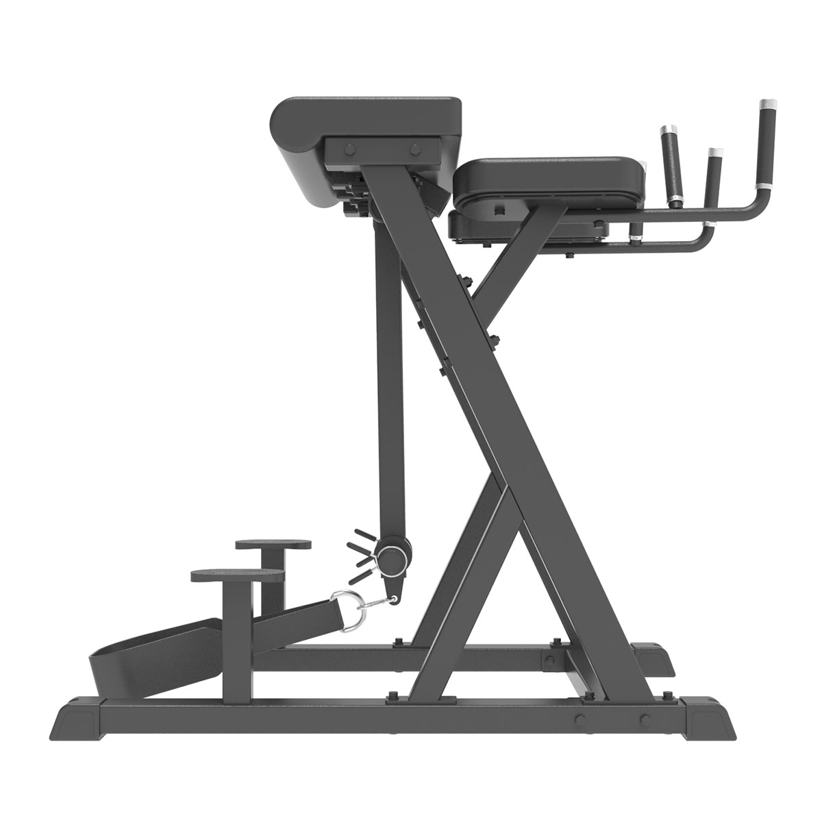 L'appareil à fessiers Hyper Extension Impulse IFP1619 a été conçu pour développer les muscles des fessiers et des ischio-jambiers. Ces muscles sont importants à entraîner car ils constituent une grande partie du noyau de votre corps et aident à soutenir votre colonne vertébrale. L’utilisation de cette machine hyperextension inversée peut également améliorer la posture, renforcer la force du bas du dos et le soutien général du poids de corps. Les coussins repose-coudes se prolongent par une double poignée de maintien pour convenir aux utilisateurs de différents gabarits. Les marches pieds permettent de positionner la sangle deriière la cheville pour pouvoir lancer la jambe en arrière et effectuer vos répétitions.