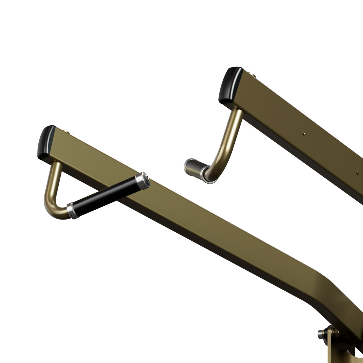 ● Largeur réduite grâce aux épis orientés vers l'interieur ● Mouvement divergent et unitaléral ● Poignées ergonomiques pour une amplitude de mouvement naturelle ● Poignées d'aide au maintien pour le tirage unilatéral ● Assise réglable en hauteur ● Rondins de calage réglable en hauteur ● Appui pectoral réglable en hauteur et en profondeur ● Epis range-disques en diamètre olympique ● Appareil de musculation professionnel conçu pour un usage intensif en club de remise en forme