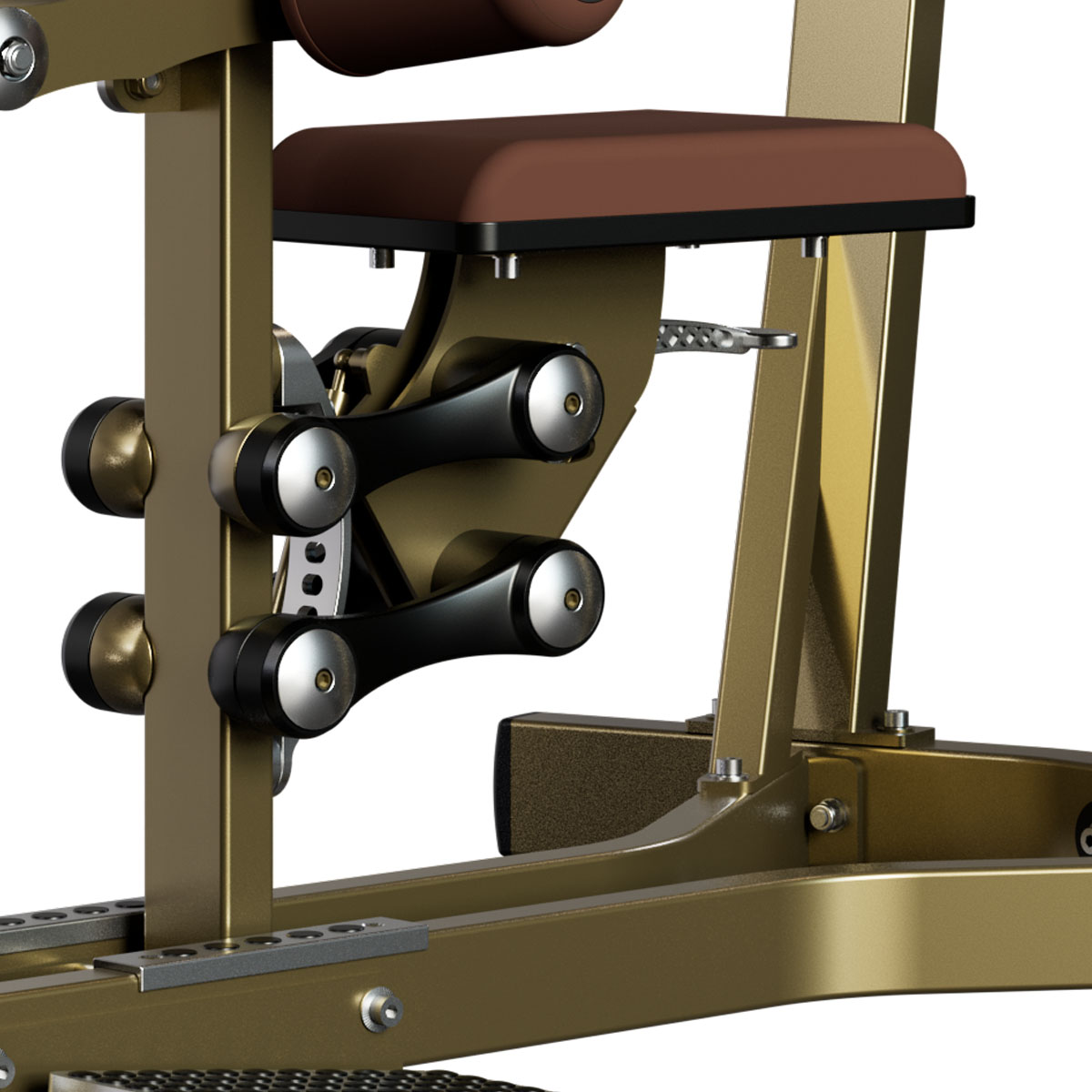 Le siège, les supports de cuisses et l'appuis pectoral réglables permettent à l'utilisateur de trouver facilement la position idéale et de maintenir sa stabilité tout au long du mouvement. La construction robuste et les composants haut de gamme de la machine assurent une longue durée de vie et des performances fiables, même en cas d'utilisation intensive et fréquente en milieu professionnel.