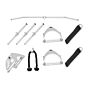 ● Station 5/6 postes composés d'un crossover dont les points de tirage sont réglables en hauteur, d'une poulie haute, d'une poulie basse et d'une poulie triceps ● Poulies universelles sur colonne rotative 360°, avec protection contre les chocs ● Réglage de la hauteur des poulies universelles à une main, sur 32 niveaux ● La barre de traction intègre des prises multiples, dont des prises type escalade et une barre droite pour accrocher vos sangles de suspension ● Les repose-pieds arqués et l'assise inclinée de la poulie basse assurent un angle de cheville optimal, quelle que soit la taille de l'utilisateur, et une bonne posture au niveau du dos ● Le dossier de la poulie triceps assure la stabilité de l'utilisateur même avec de lourdes charges ● Rondins cale-jambes de la poulie haute réglable sur 5 positions ● Lourdes colonnes de charge de 130 kg sur poulie haute et poulie basse (80 kg sur triceps, 2x 90 kg sur crossover) ● Poids total 915 kg, gage de stabilité et de qualité ● Accessoires fournis : (1) barre de lat, (3) barre à biceps/triceps, (2) poignée simple et (1) poignée rowing, toutes en aluminium ultra-léger, (1) corde à triceps, (2) chevillière matelassée ● Appareil de musculation professionnel conçu pour un usage intensif en club de remise en forme ● Voir la section "Composants" pour le détail complet des caractéristiques techniques