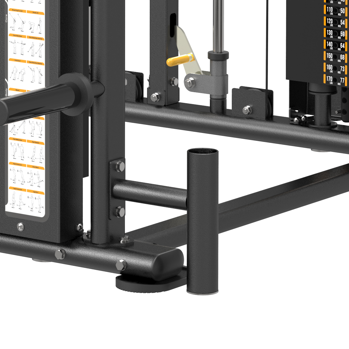 Fabriqué en acier épais, le cadre est extrêmement résistant. Pour limiter la corrosion et l'écaillement, et pour une esthétique optimale, le châssis est recouvert d'une peinture électrostatique. La hauteur des poulies est réglable sur plusieurs positions, selon les besoins de chaque exercice. Le câble gainé de caoutchouc et les poulies sur roulements à billes permettent de réaliser une grande variété d'exercices avec une mouvement de câble d'une fluidité exceptionnelle.