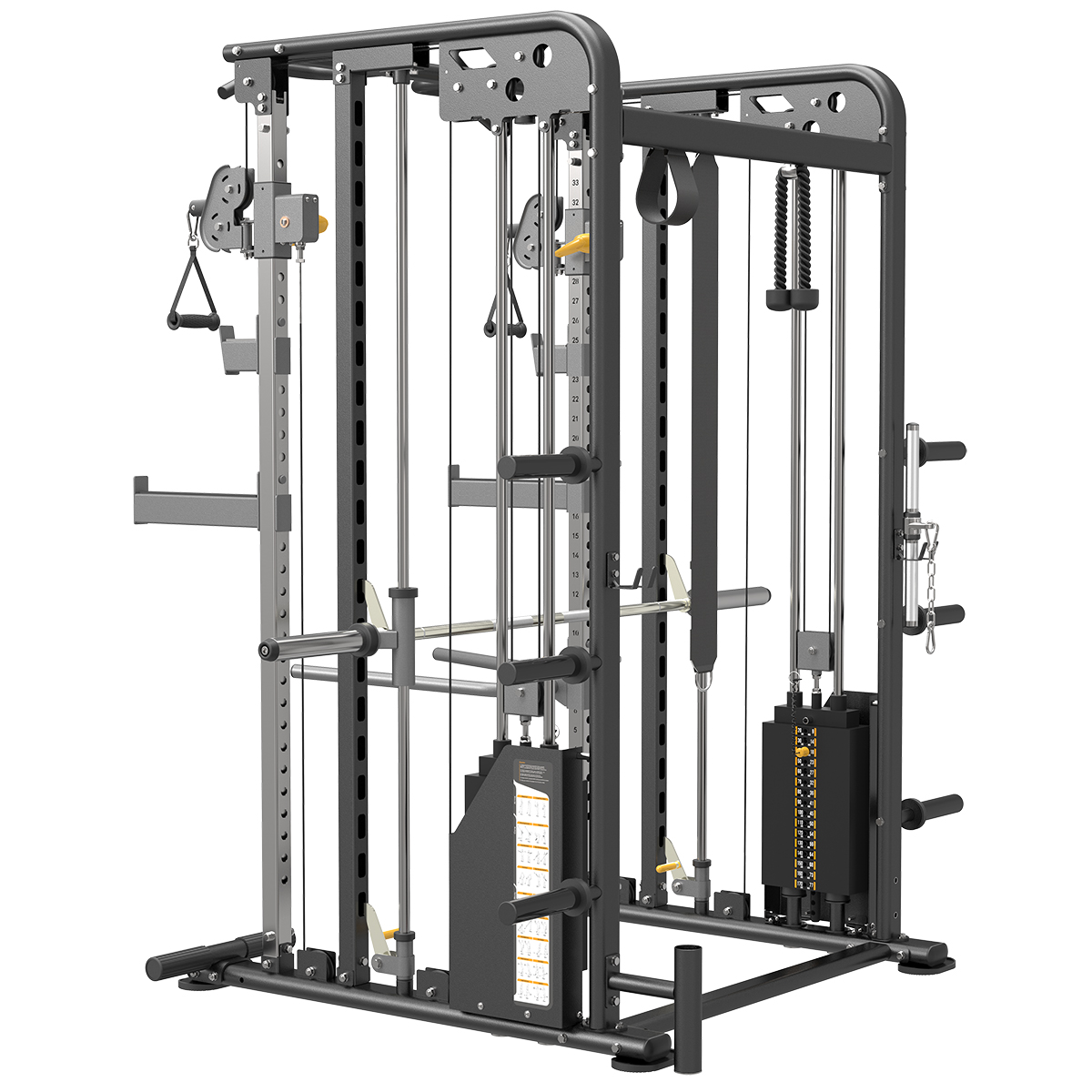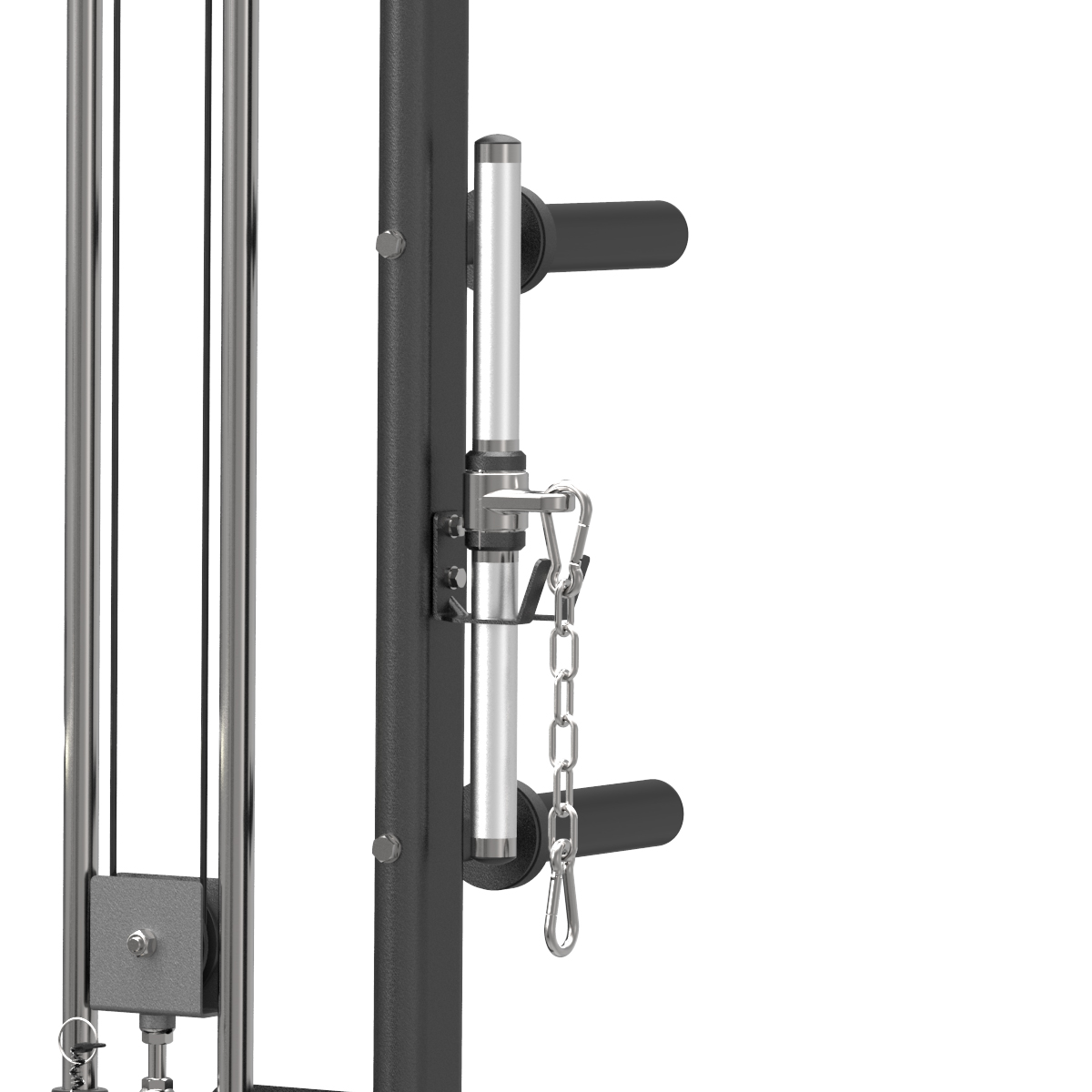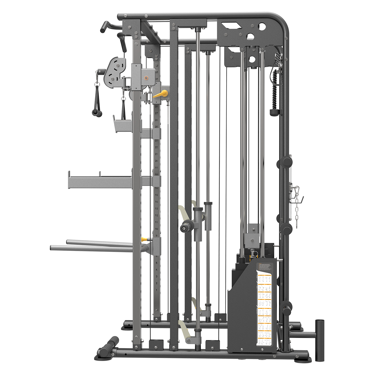 Fabriqué en acier épais, le cadre est extrêmement résistant. Pour limiter la corrosion et l'écaillement, et pour une esthétique optimale, le châssis est recouvert d'une peinture électrostatique. La hauteur des poulies est réglable sur plusieurs positions, selon les besoins de chaque exercice. Le câble gainé de caoutchouc et les poulies sur roulements à billes permettent de réaliser une grande variété d'exercices avec une mouvement de câble d'une fluidité exceptionnelle.