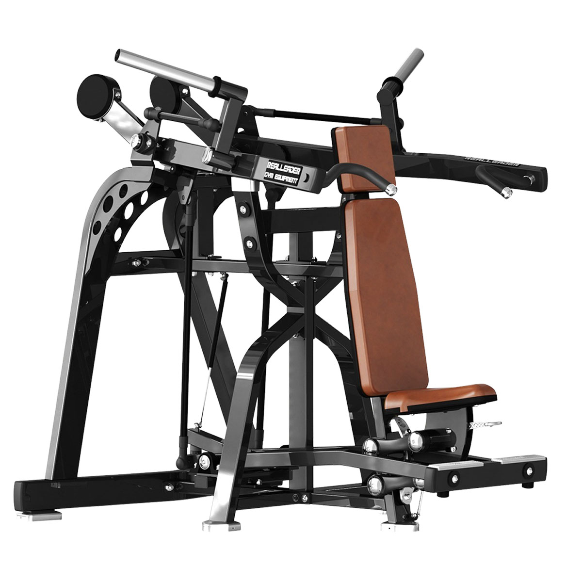 La presse à épaules LD-1003 est un appareil professionnel de la série LD de Realleader, conçu pour un usage commercial dans les salles de sport et les centres de fitness. Elle permet un entraînement efficace des muscles des épaules avec une amplitude de mouvement naturelle et offre la possibilité de travailler aussi bien de façon bilatérale qu'unilatérale.