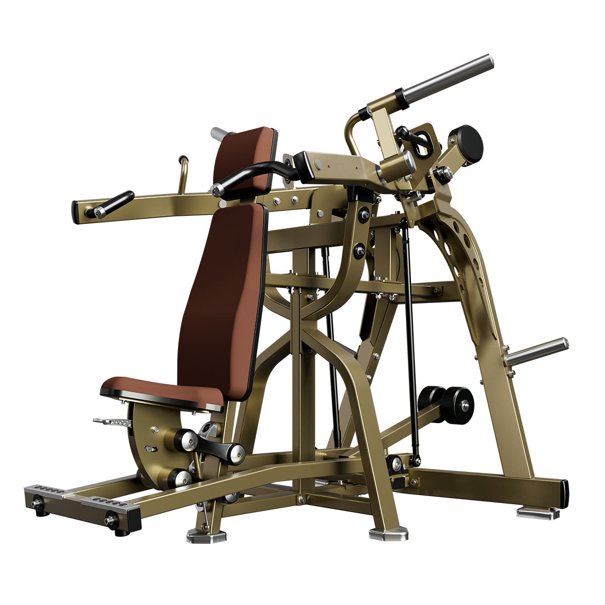 Les poignées ergonomiques inclinées assurent une trajectoire biomécaniquement correcte, minimisant les contraintes sur les articulations des épaules et optimisant l'activation musculaire. Ceci permet un entraînement doux mais efficace, contribuant à améliorer la force des épaules et la posture.